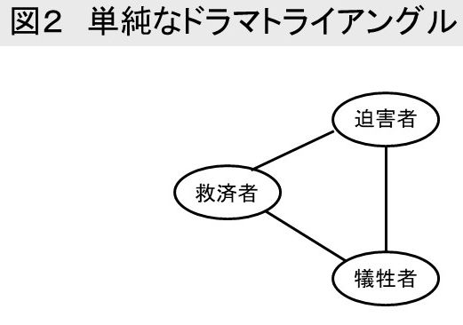 ドラマトライアングルとは、人間関係を3つの典型的な役割(迫害者・犠牲者・救済者)にあてはめて解釈するモデルであり、1968年にカープマンによって提唱されました。彼は交流分析(TA)の開祖であるエリック・バーンの弟子であり、ドラマトライアングルを説明する理論的背景としても交流分析が使われています(図1)。