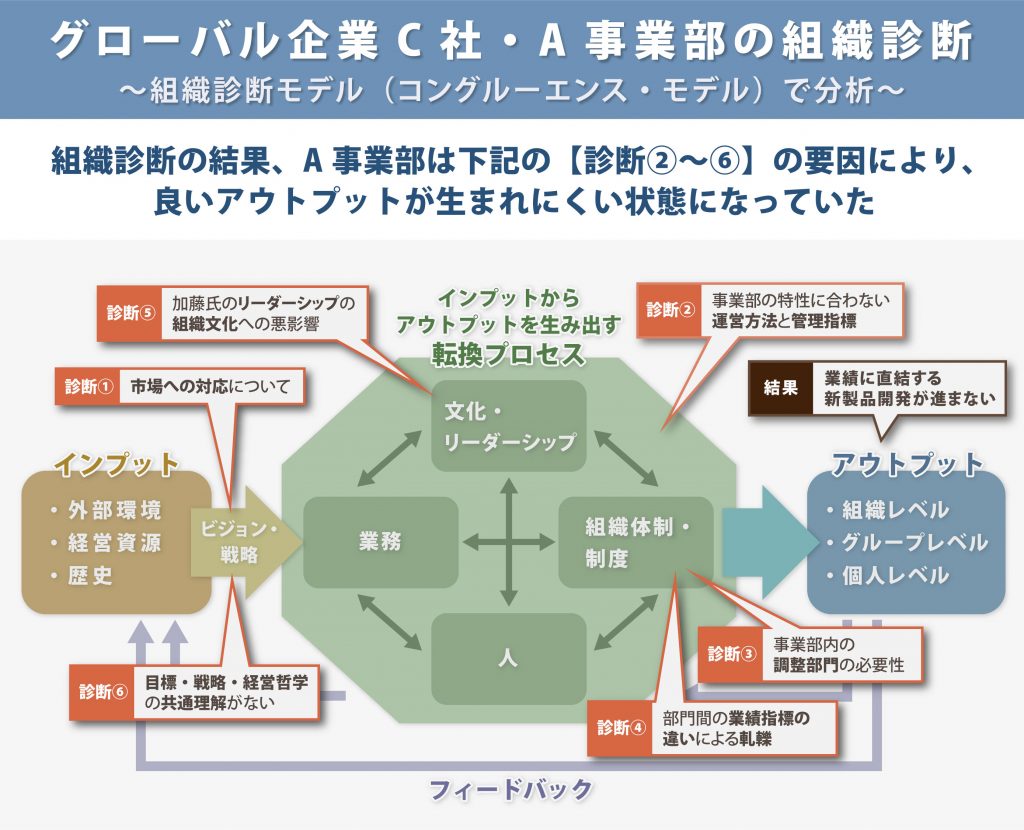 「グローバル企業C社の部門間(製販研マーケ)葛藤」の症状と診断結果をもとにした、具体的な打ち手について概説します。