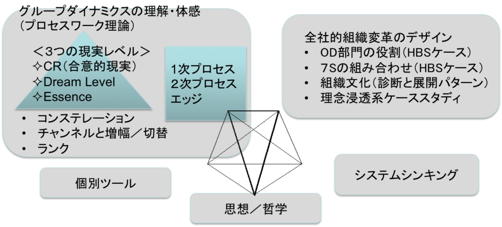 組織開発コンサルタントに必要な5つの知識領域を学ぶ(下図)